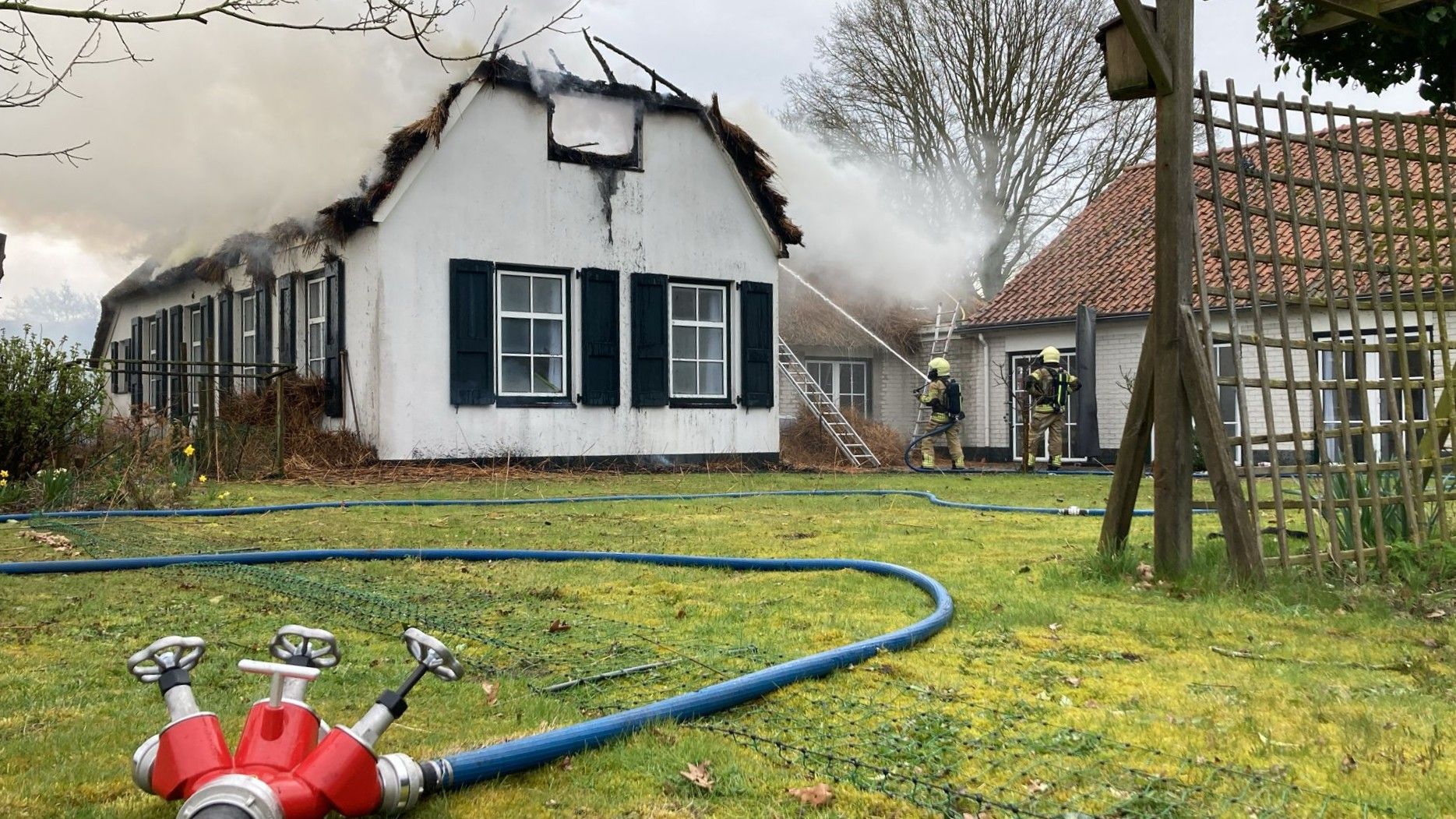 De brand was groot. Daarom zette de brandweer extra mensen en voertuigen in. Zij hebben hard gewerkt om de brand onder controle te krijgen. Inmiddels is de brand onder controle. Een kraan is ingezet om het riet van het dak te halen. Zo kon de brandweer de laatste brandhaarden blussen. De meeste blusvoertuigen zijn terug naar de kazerne. Een aantal blijft nog om de laatste resten riet weg te halen. Daarna gaan ook zij terug naar de kazerne.